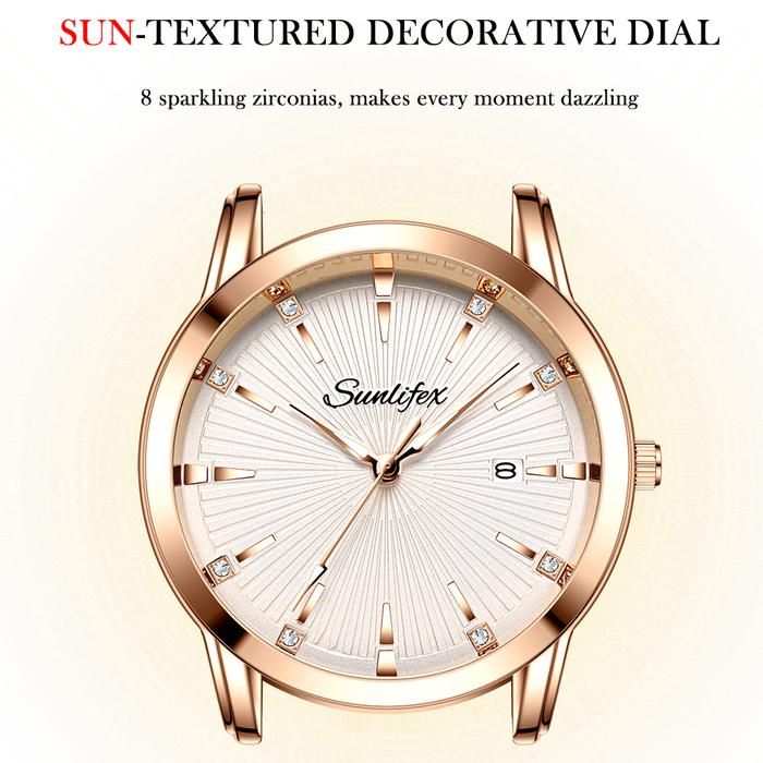 SUNLIFEX Jam Tangan Pria Analog Kalender Tali Kulit Jam Tangan Cowok