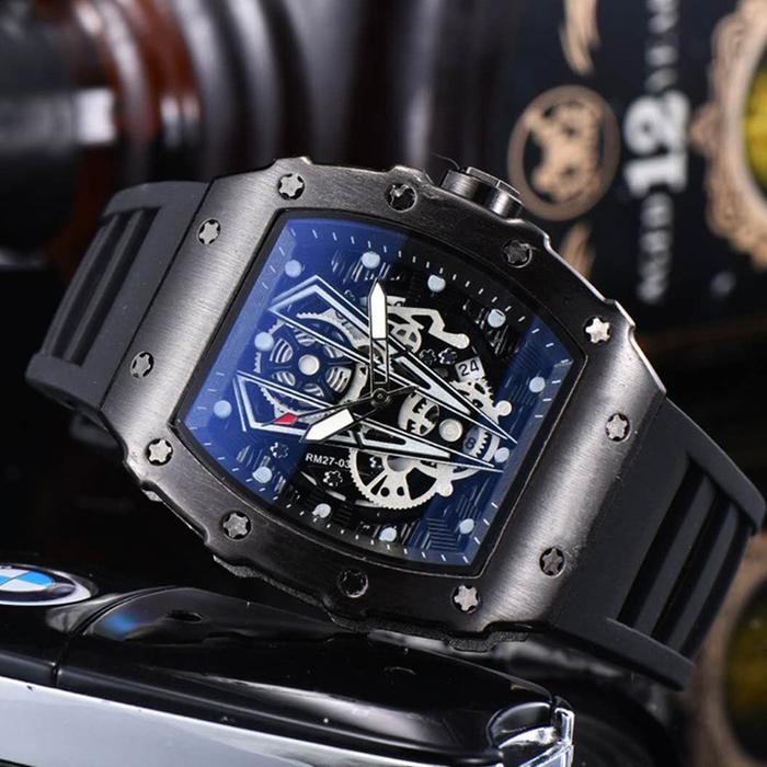 SUNLIFEX Jam Tangan Pria Square Kalender Tali Silikon Bercahaya Kuarsa