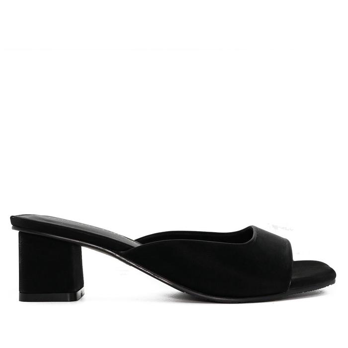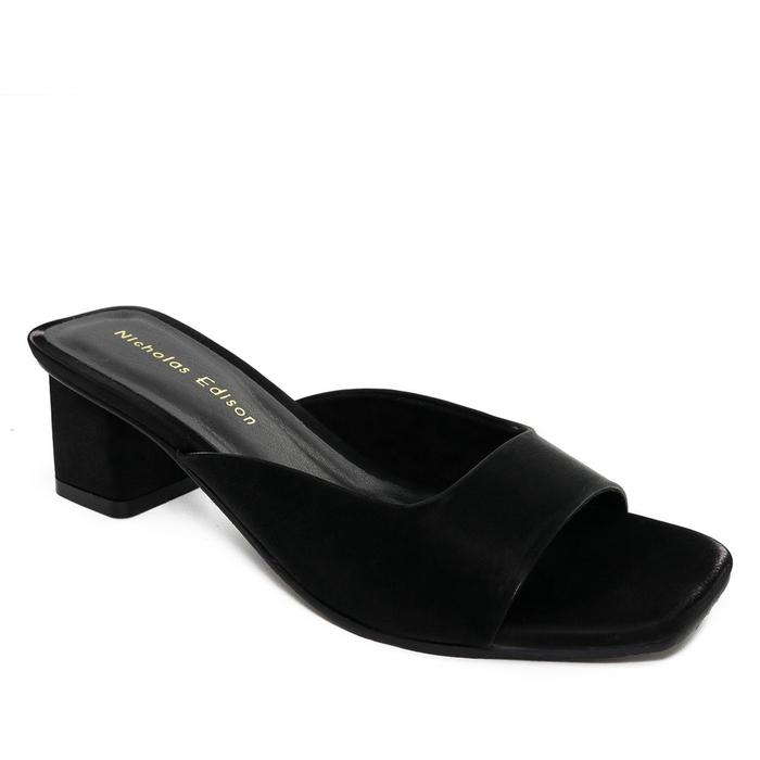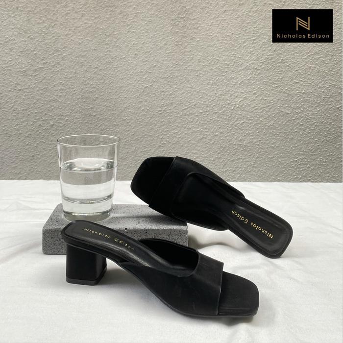 NIcholas Edison Block Heel Vindi Black Sandal Hak Tinggi Sedang Kotak Slip On