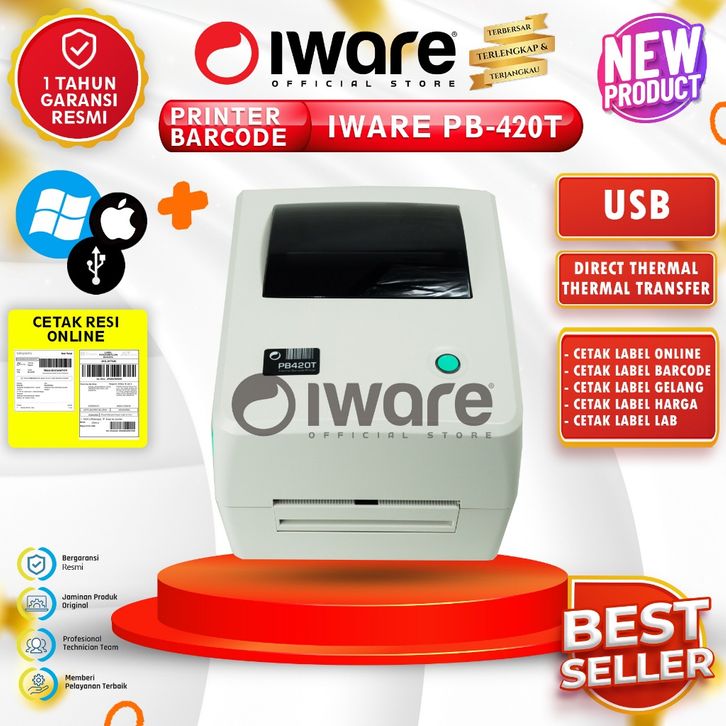 Printer Barc0de PB-420T Usb Cetak Resi Harga Direct Thermal & Transfer Windows Mac