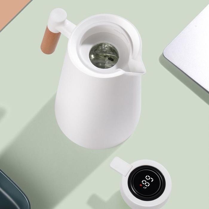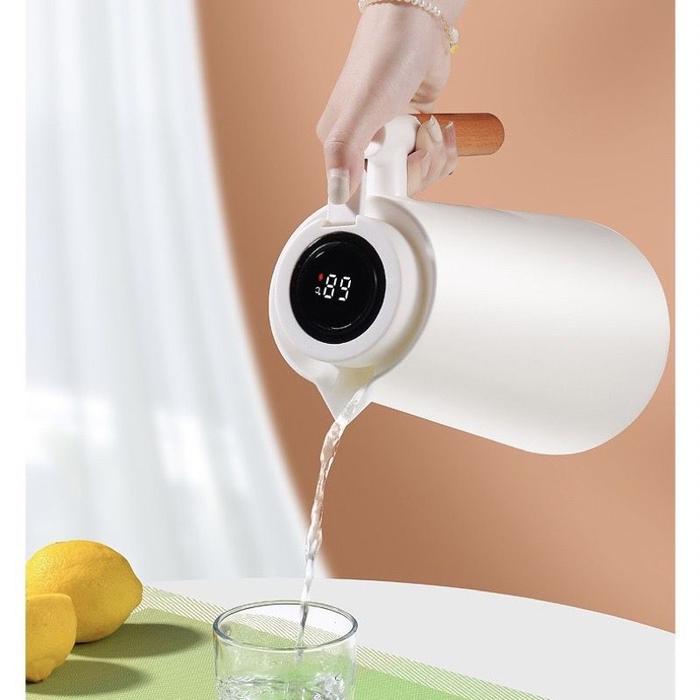 Teko Air Panas Dingin Dengan Alat Ukur Suhu Termos Air Panas Tahan Dingin Vacum 1L dengan Gagang kayu