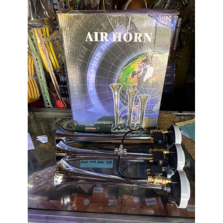 KLAKSON TELOLET 3 CORONG MERK DOLPIN 12V / 24V, DILENGKa-p-i DENGAN MODUL NADA BASURI 21 NADA