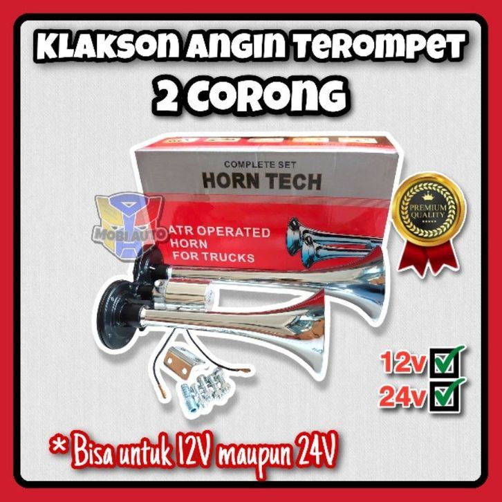Klakson mobil ele-ktrik 12V/24V dengan dua tabung, suara nyaring, berkualitas tinggi 2 Terompet