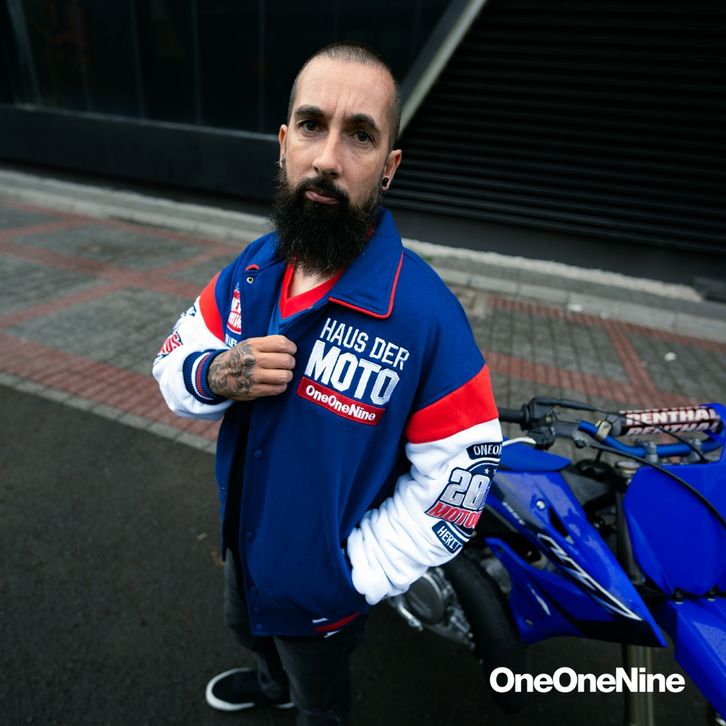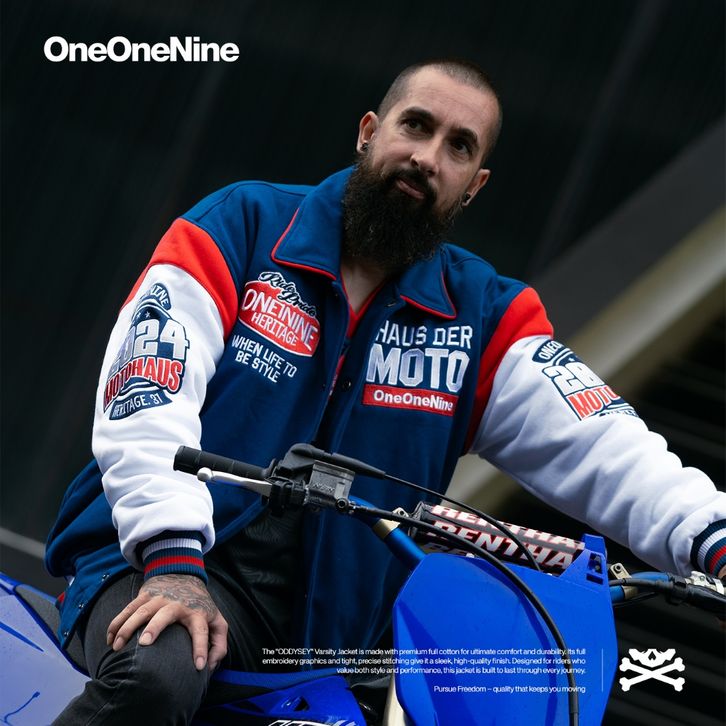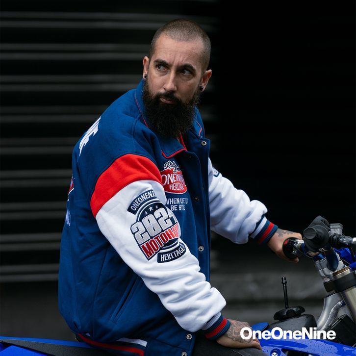 Oneonenine Ksr Jaket Varsity Oddysey Blue - Jaket Motor Varsity Fleece Bordir Do1