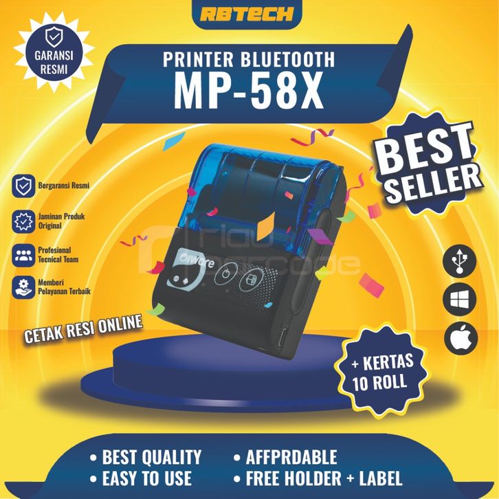 MURAH Printer Thermal Mini Bluetooth MP58X 58mm Portable Gratis Kertas Thermal (Ada Baterai) efekr