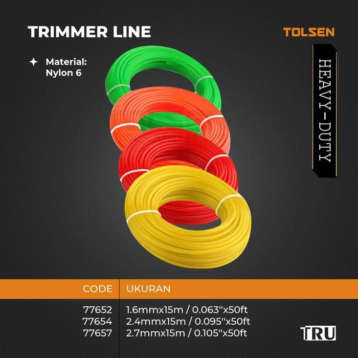 TRIMMER LINE Tali Senar Mesin Potong Rumput 15 Meter 1.6MM 2.4MM 2.7MM Tolsen - 2.7mm(KOTAK)