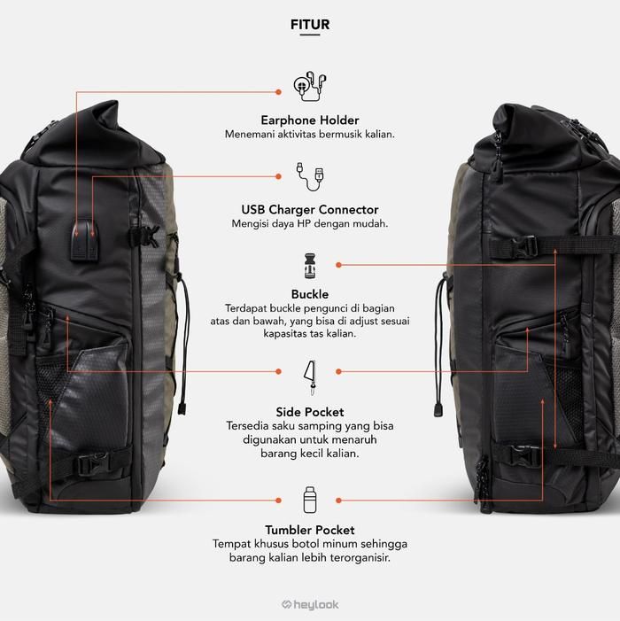 TAS RANSEL PRIA WATERPROOF BACKPACK ROCKFORD TAS OUTDOOR TAS PUNGGUNG - Hitam