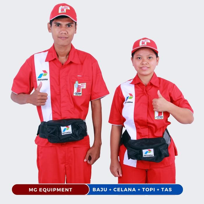 Baju Celana Seragam SPBU Pria Wanita Satu Set + Topi + Tas - operator laki2 M