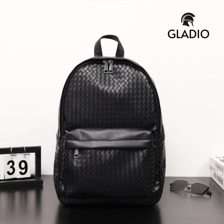 GLADIO Tas Ransel Pria Kulit Hitam Gavin Motif Anyaman Travel Backpack Premium Muat Laptop GLD048B5