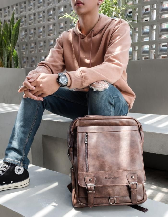 Tas Ransel Pria Kulit Laptop Mario Vizzari Cobalt (90-880) - Hitam