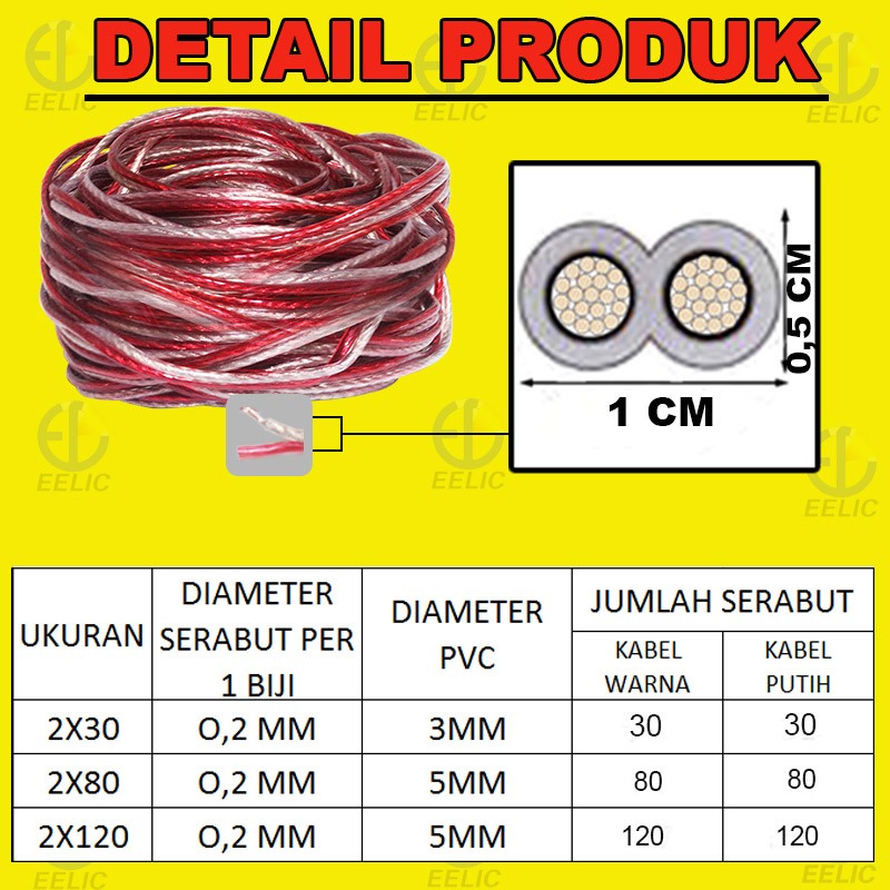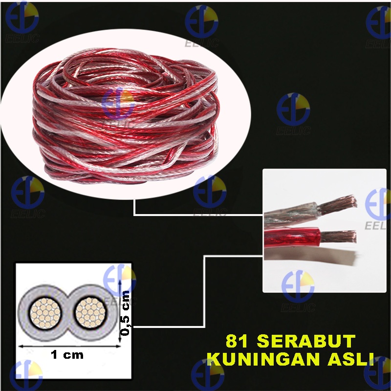 EELIC KAL-I2X80 -15M KABEL LISTRIK AUDIO SERABUT TRANSPARANT 2X80 SAMA DENGAN 2X2.5 MM2 PANJANG 15 METER