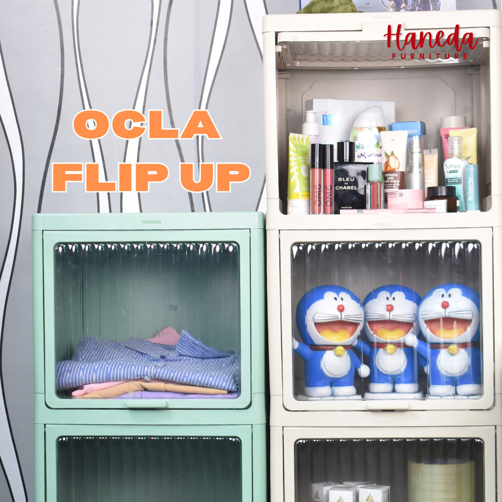 HANEDA Lemari Pakaian Plastik OCLA FLIP UP Lemari Susun Rak Sepatu Pintu Transparan Geser Atas Roda