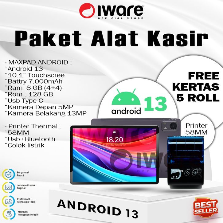 Paket Tablet Android 13 10- + Printer Thermal 58mm 8/128GB Usb+Bluetooth