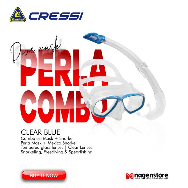 Cressi PERLA COMBO SEPAKET Mask DAN Snorkel Mask Freediving Snorkling BLACK dan Clear bening