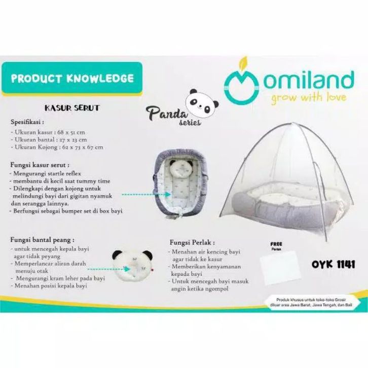 [2 kg] Omiland Kasur Bayi Serut + Kelambu Kojong (Bisa Dilepas) + Extra Perlak Series Panda - OYK 1141 / Alpaca OB41204