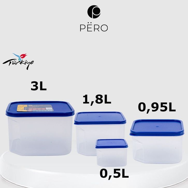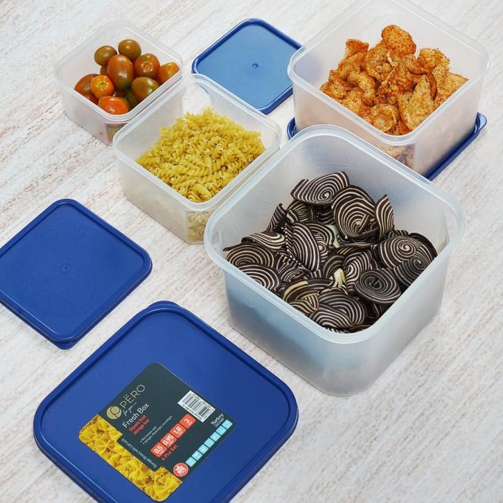 Pero Food Storage Box Square Set of 4 / Tempat Penyimpanan Makanan Isi 4 pcs Anti Tumpah Anti Lempem / Tempat Wadah