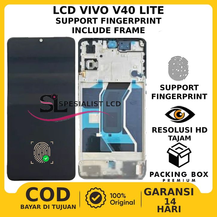 LCD TOUCHSCREEN . V40 LITE ORIGINAL INCLUDE FRAME SUPPORT FINGERPRINT GARANSI
