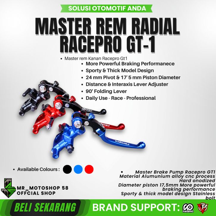 MASTER REM RACEPRO SINGLE RADIAL GT-1 17MM KOPLING KIRI RACE PRO GT1 ALUMINIUM T6 CNC BAUT STAINLESS