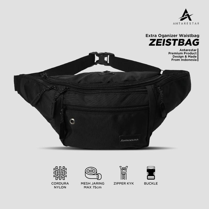Tas Selempang Pria Black Tas WaistBag Big Size Tas Pinggang Pria - Hitam