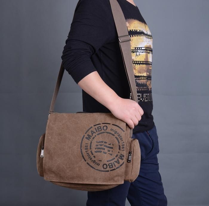 Tas Selempang Pria Messenger Canvas Printing Tas Kanvas - Cokelat
