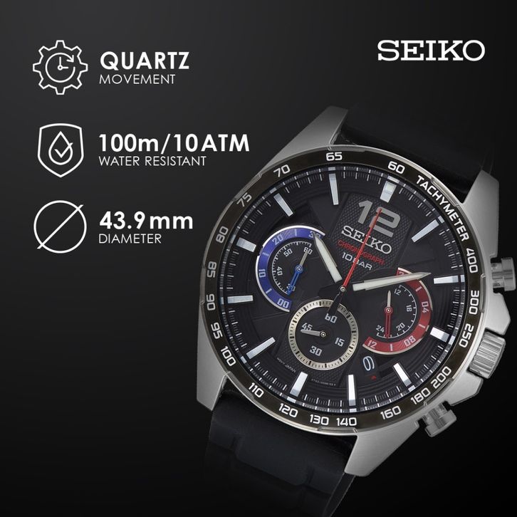 Jam Tangan Pria Seiko Chronograph SSB347P1 Black Rubber Original