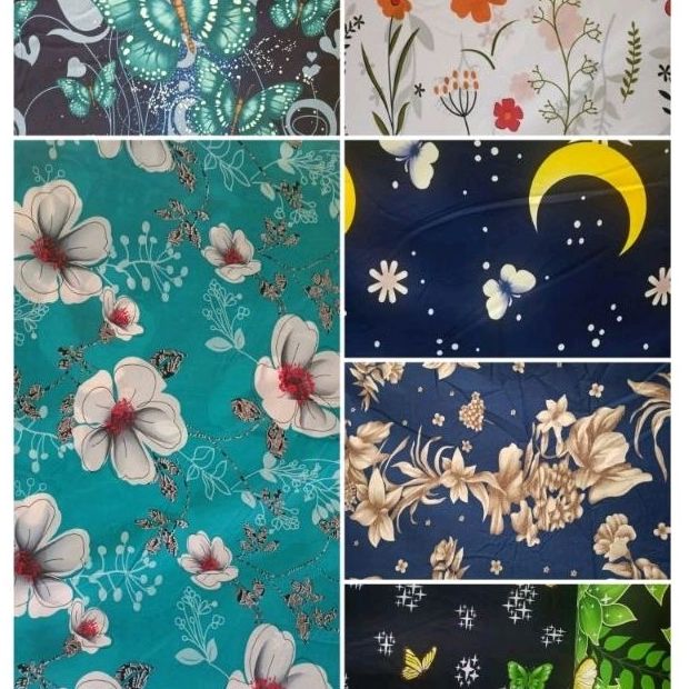 Bunga Orange, Bunga black, Bunga white, Butterfly Black, Butterfly Navy, Butterfly green, Cat pink, Cekiddo rabbit, Daturafastu green, Flora Navy, Flora blue, Flora green, Flowers putih, Girl pink, Jumputan Abu, Jumputan Merah, Jumputan lemon, Lily, Maroon Khasmir, Monstera Red white, Monstera black, Monstera grey, Monstera yellow, Mozaik Grey, Mushroom Warna warni, Palm Hitam, Rose merak, Rose salur, Sakura grey, Sakura navy, Shabby merah, Summer, Sun flower, Tulip Blue, Wave blue, flora blue diomand, flora sakura