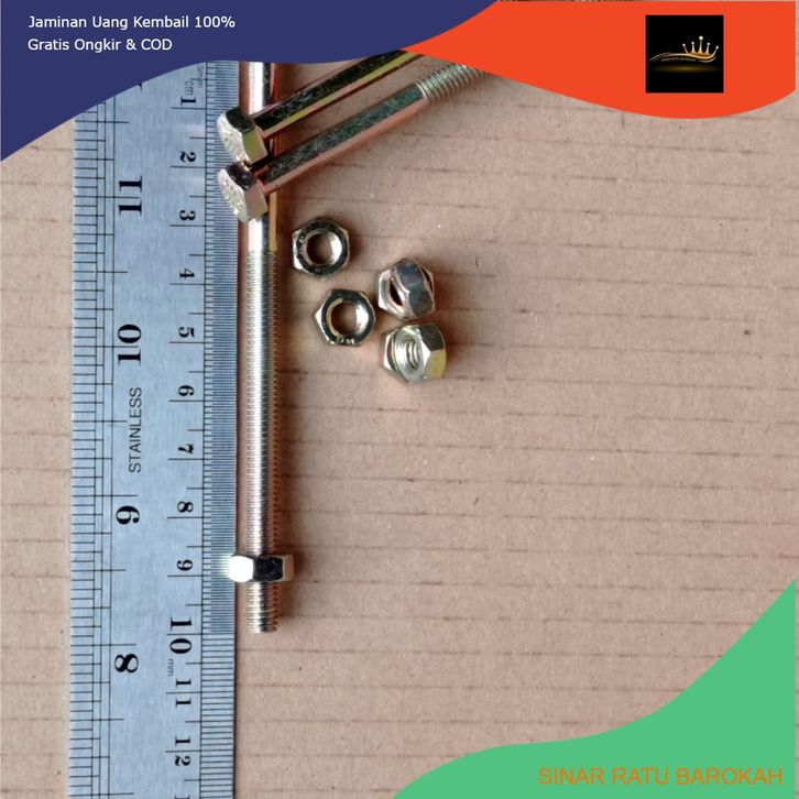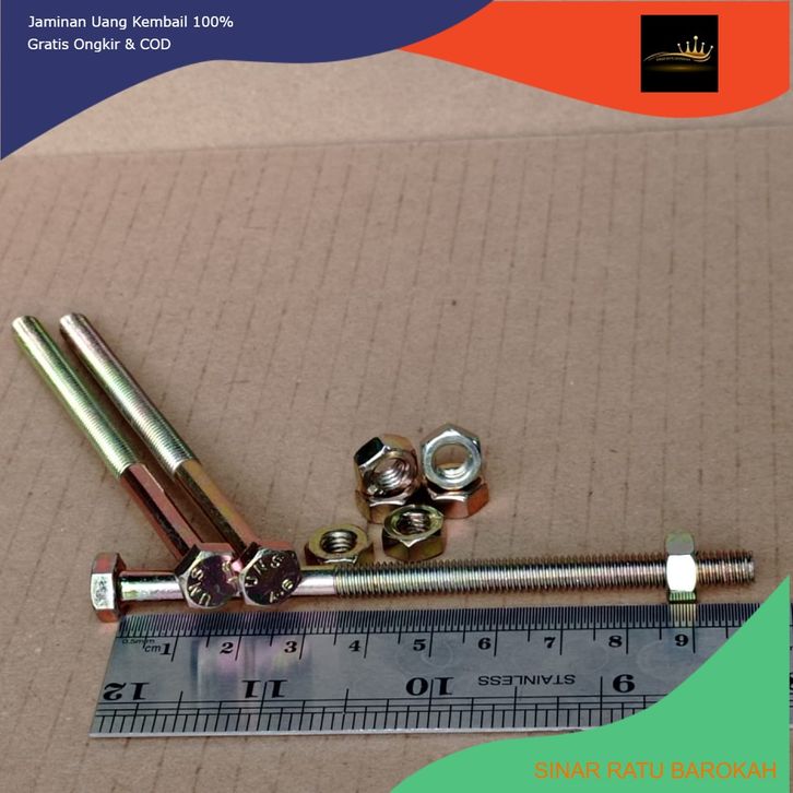 BAUT MUR KUNING M6 X 100 PANJANG 10CM 10 CM 100MM 100 MM BMK M6X100 BAUT 6X100 6 X 100 KUNCI 10