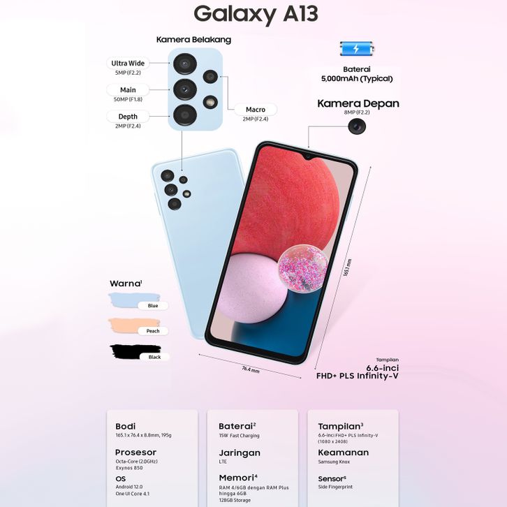 Samsung Galaxy A13 / 6/128 / Baterai 5000 mAh / Chipset Exynos 850 / Android / Garansi / Secondhand