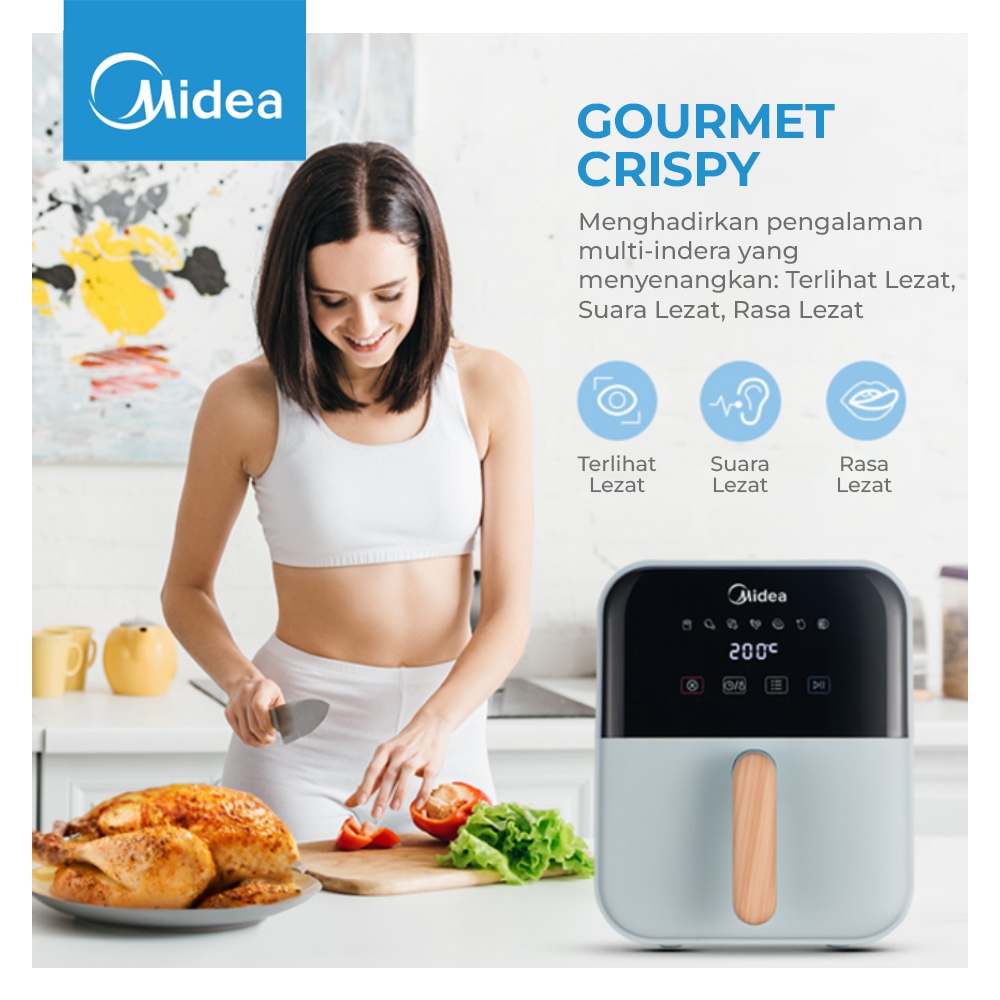 Midea Air Fryer 4L 650W Low Watt MAD40007ADG Penggorengan Tanpa Minyak Digital Touch Blue