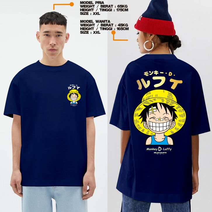Kaos Distro Unisex MONKEY D LUFFY Chibi Straw Hat KIDS Baju Gambar Anime One Piece Versi 2