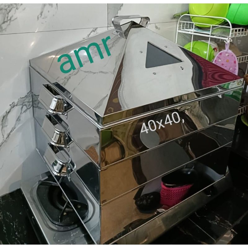 Kukusan Kotak Stainless Steel Tebal 40x40 3 Tingkat