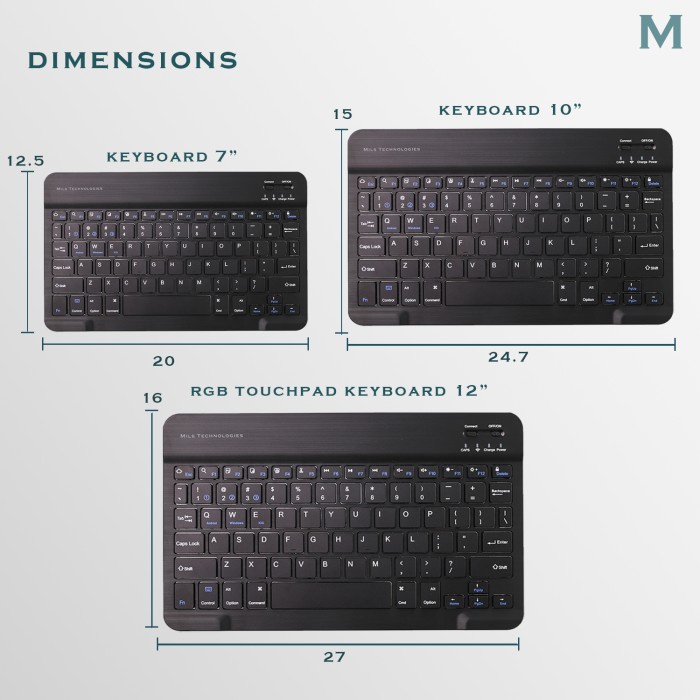 Mils Technologies Bluetooth Keyboard 7 10 12 inch for iPad Huawei Samsung Tablet