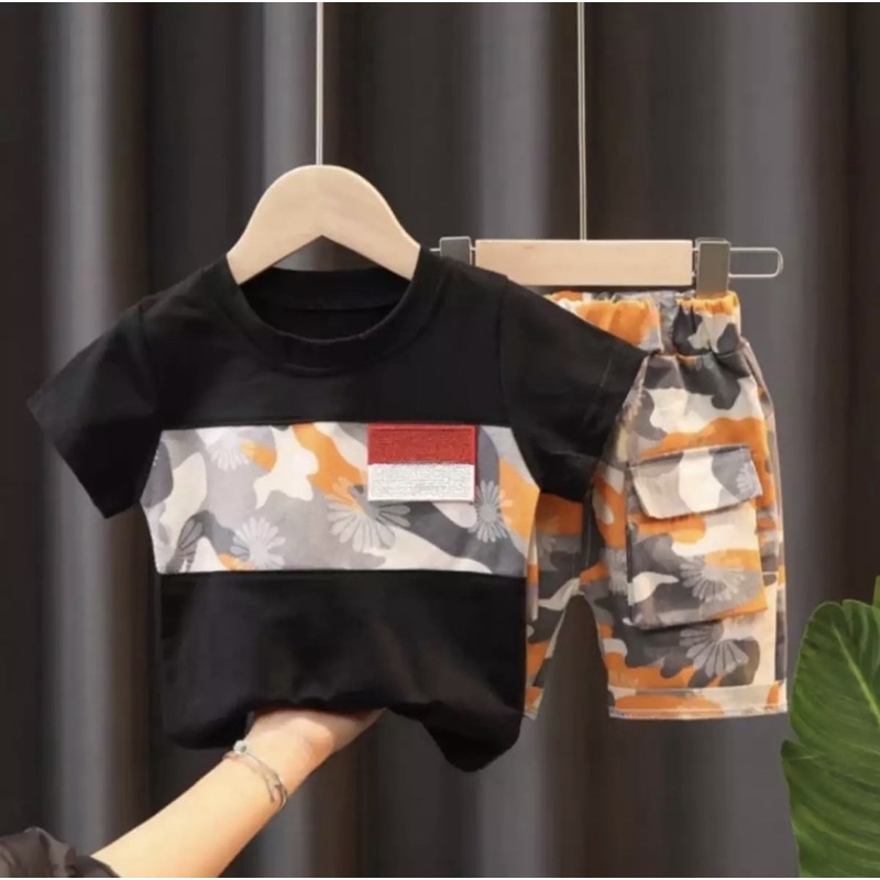 kaos anak setelan baju dan celana anak bendera indonesia 1-5 tahun