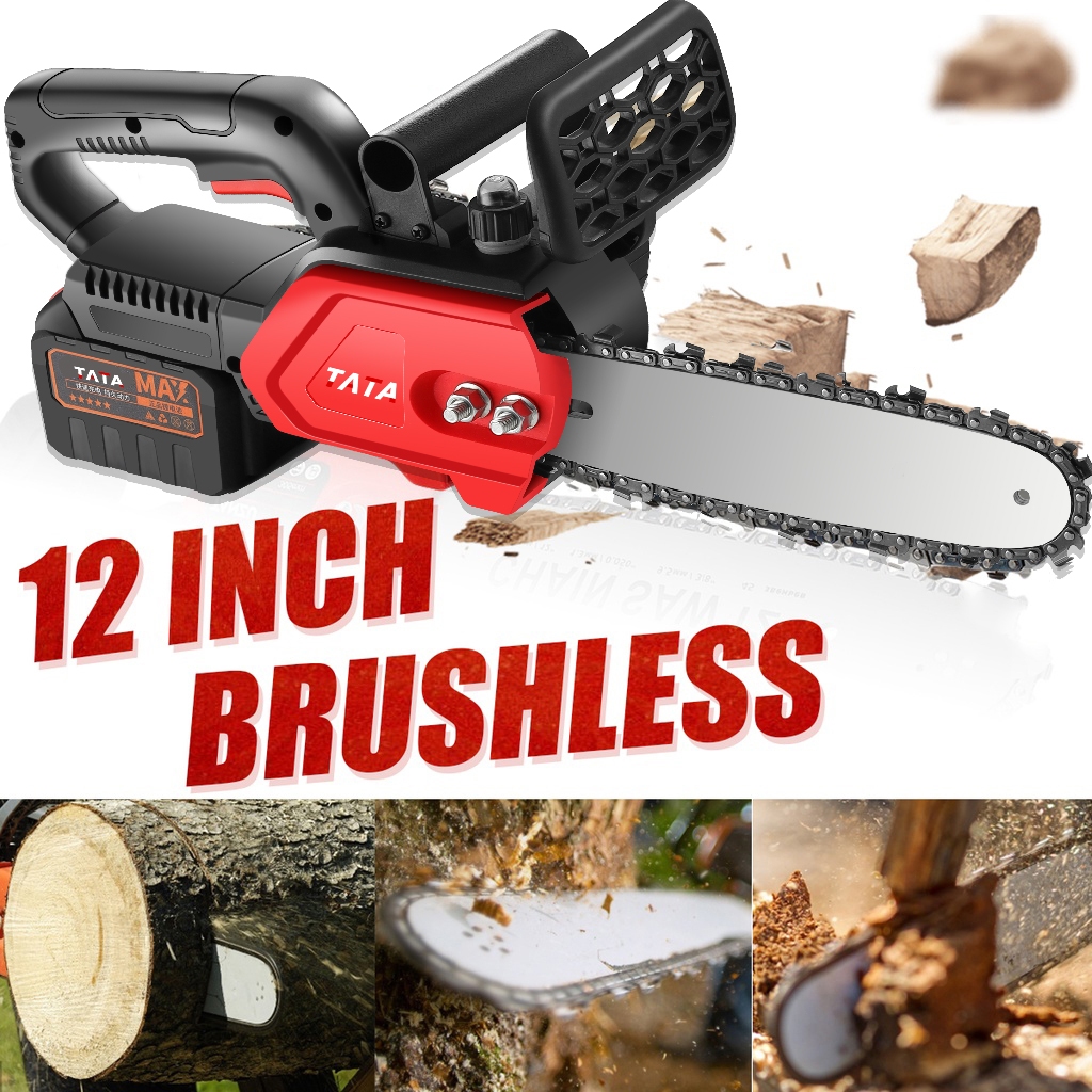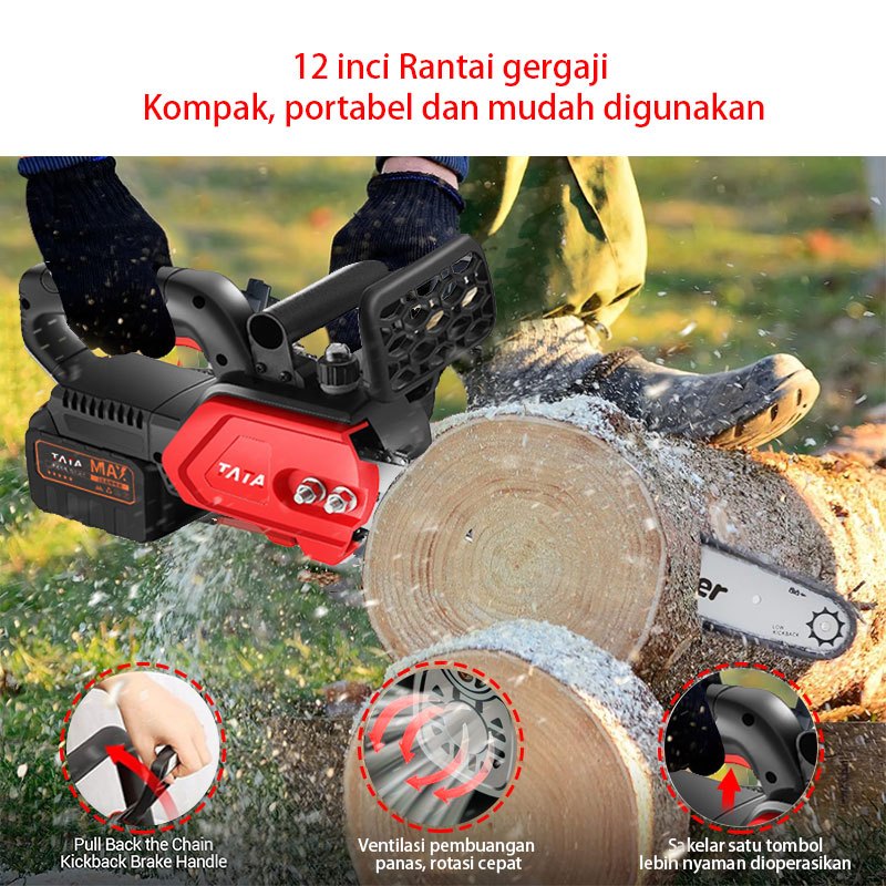 【】⚠️ ⚠️ TATA Ready stock 12 Inch Chainsaw Gergaji Mesin Listrik Rantai Elektrik Mini Portable Genggam Lithium Baterai 4