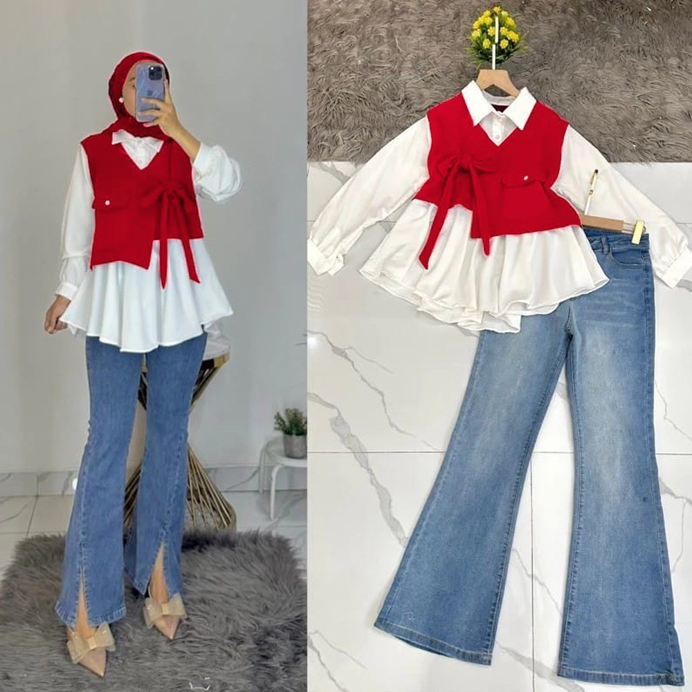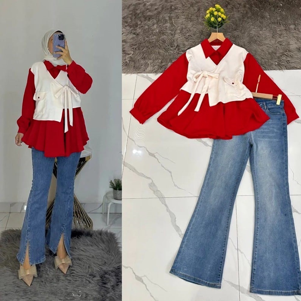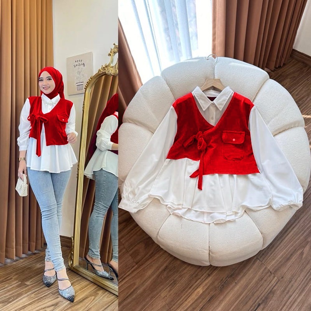 Blouse Atasan Merah Putih 17 Agustus l Agustusan All Size Fit To XL Besar OOTD Wanita Muslim Casual Daily VH1