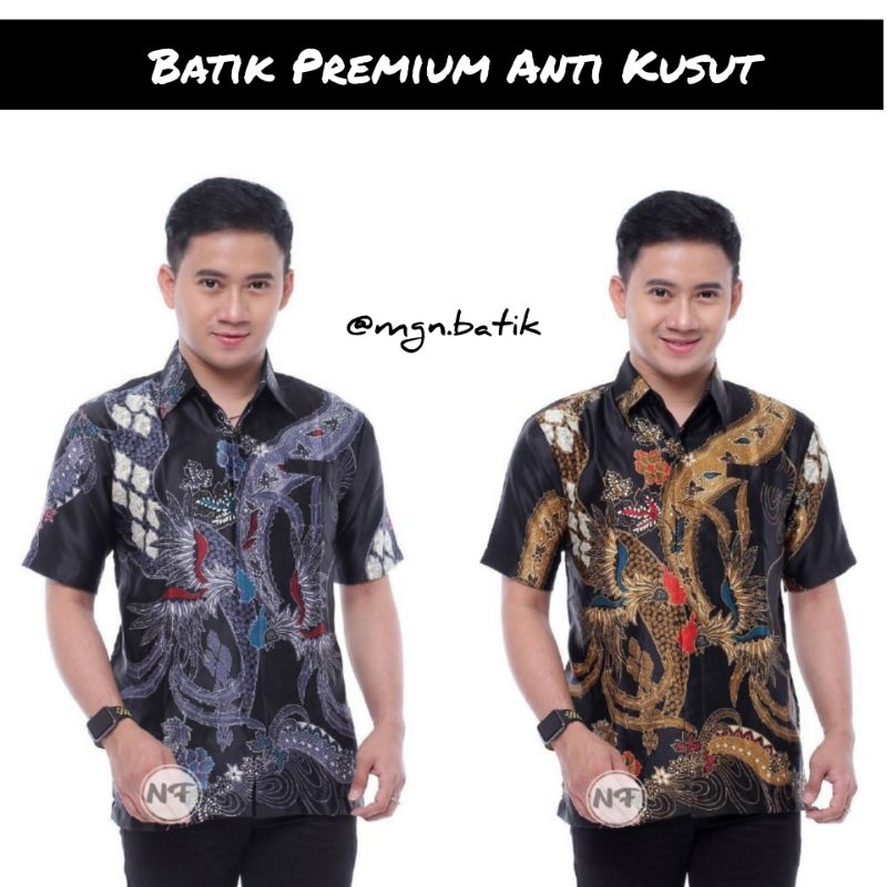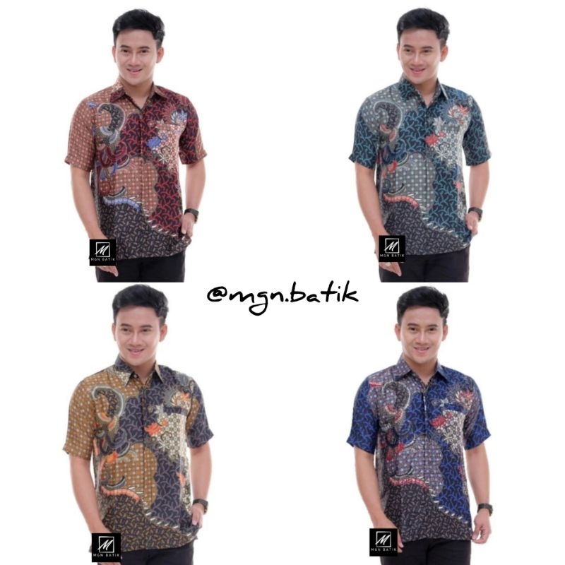 Batik Pria Semi Sutra Lengan Pendek Premium Quality Silky Satin Sutera