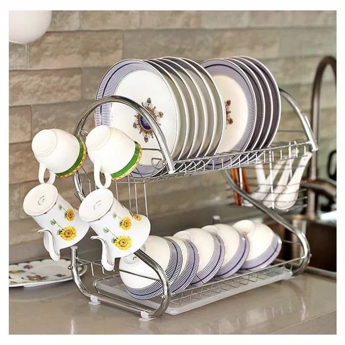 Rak Piring Dapur Stainless Steel Penyimpanan Rak Pengering Piring Rak Mangkuk Piring