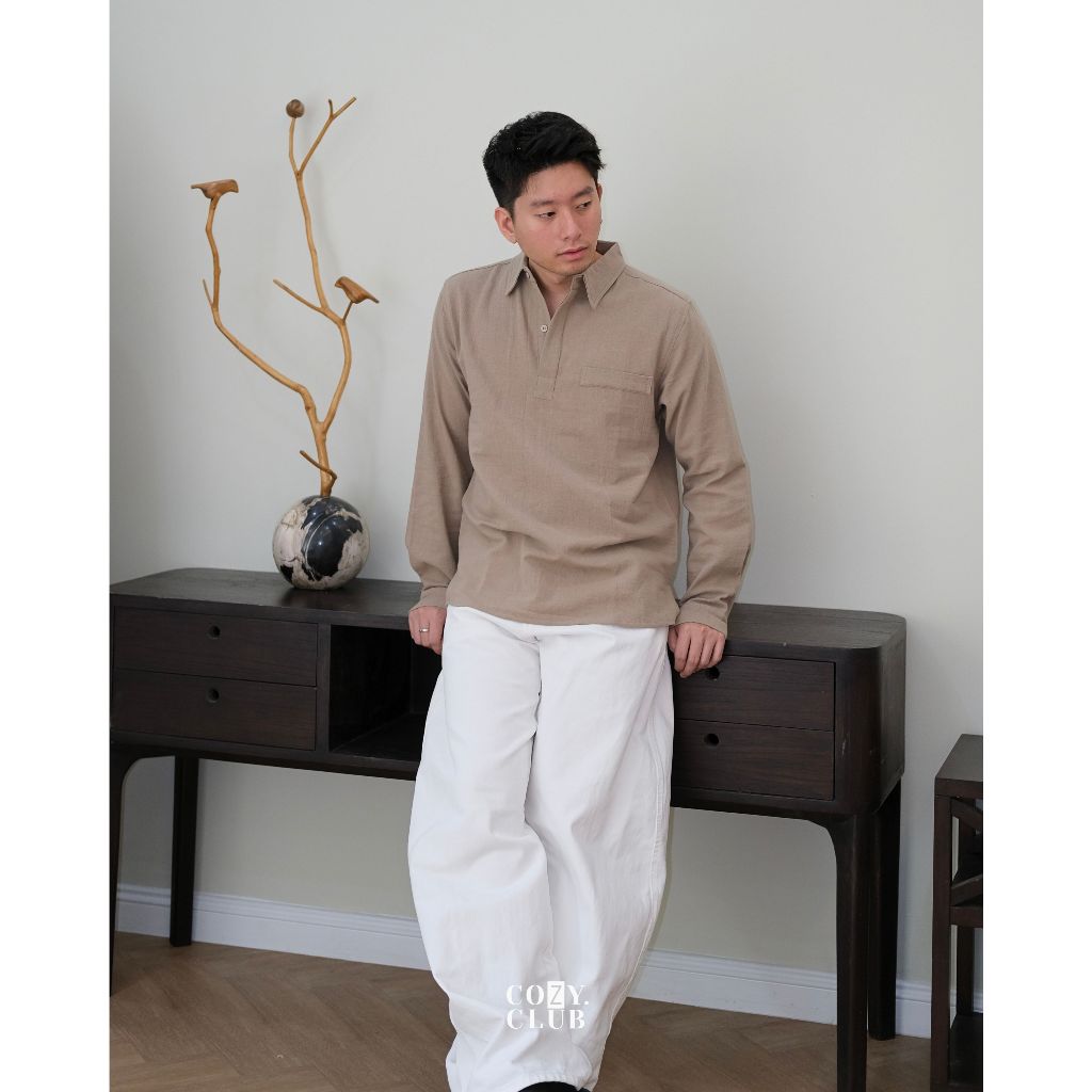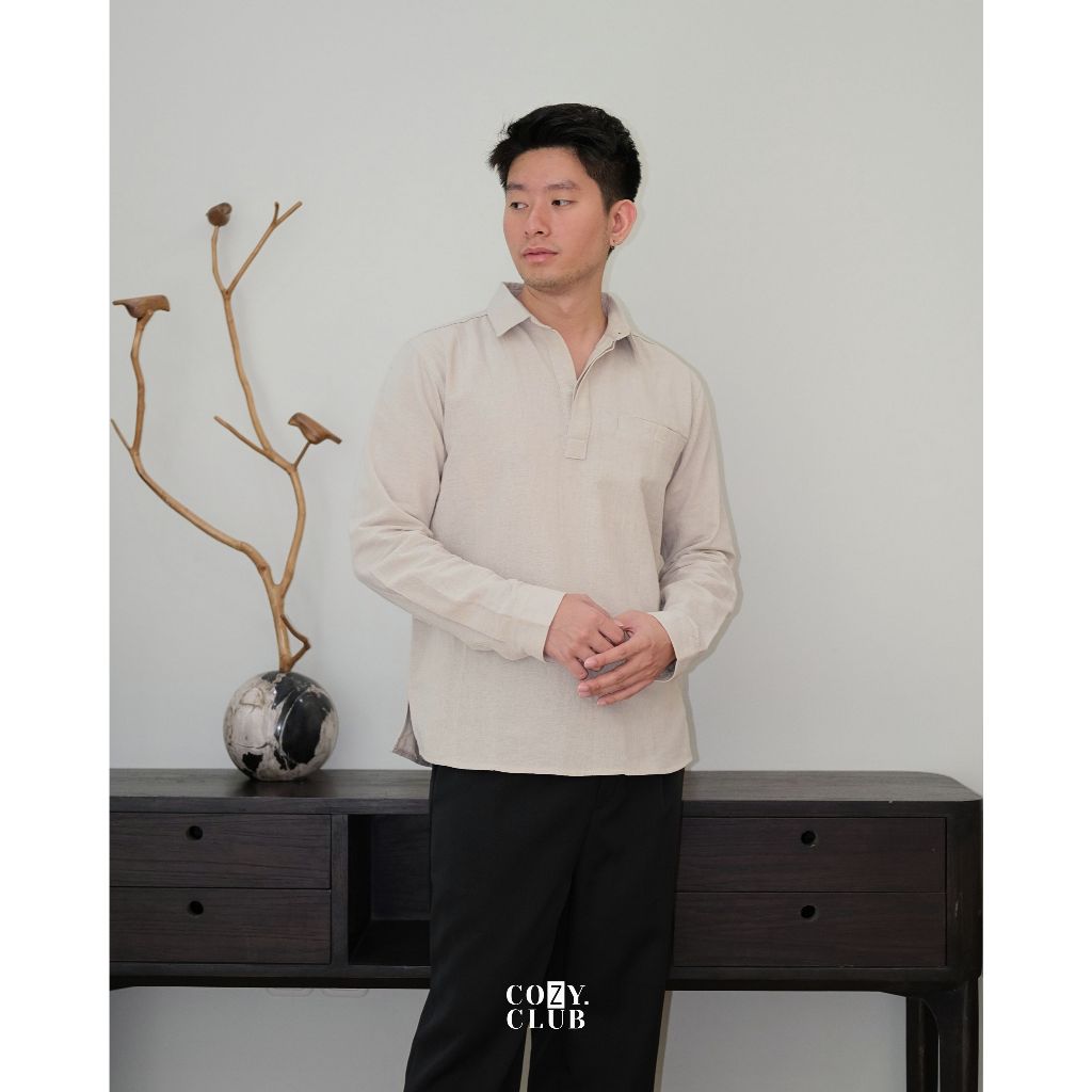 Kaos Kerah Pria Linen Lengan Panjang | Linen Longsleeve Polo
