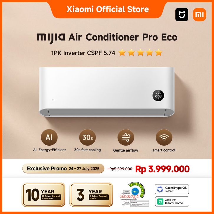 xiaomi mijia ac air conditioner 1 pk inverter pro eco 5-star low watt smart control quick cooling
