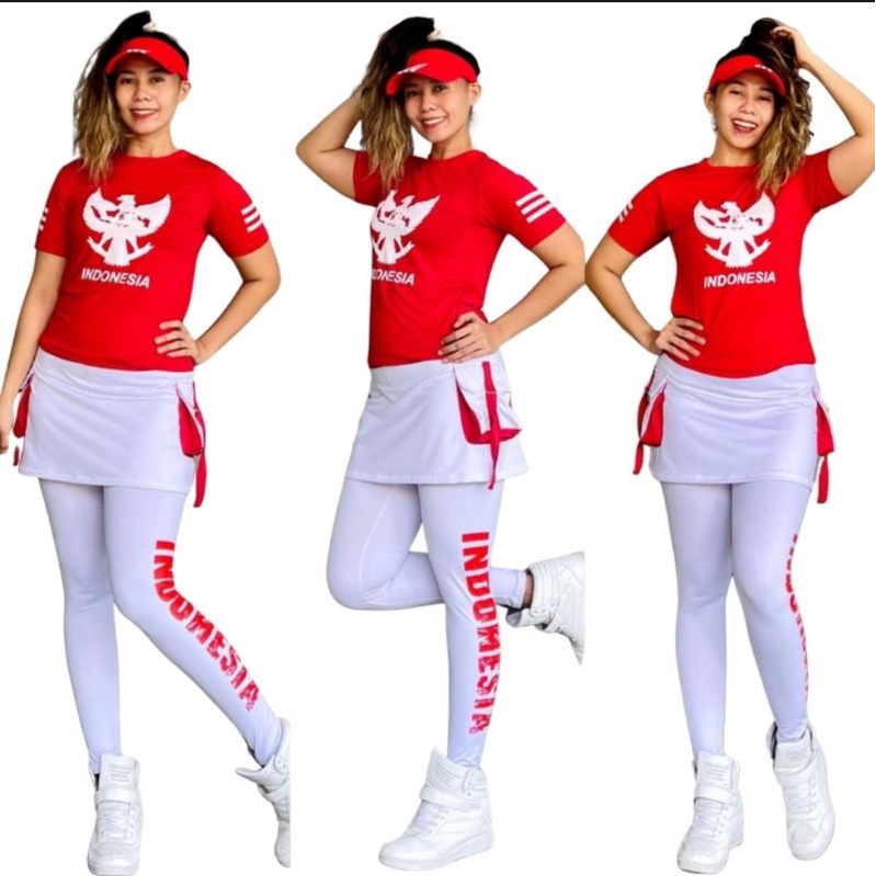 Baju Senam Wanita Rok GARUDA Indonesia Merah Putih 17 agustus aerobic best seller terlaris terbaru