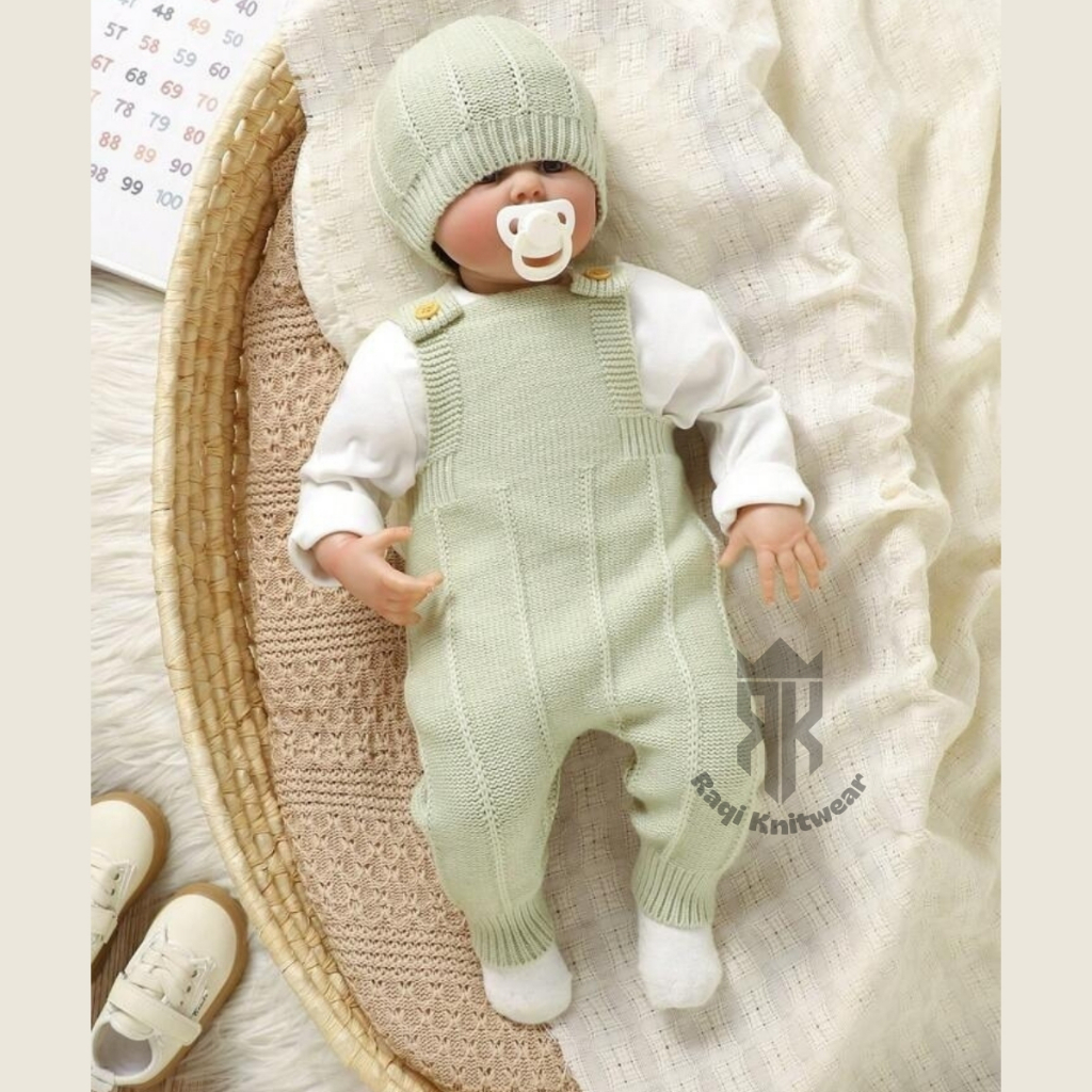 Qiano Setelan Rajut Overall Jumpsuit Bayi Newborn 0-18 Bulan Oneset Knit Romper