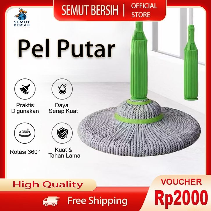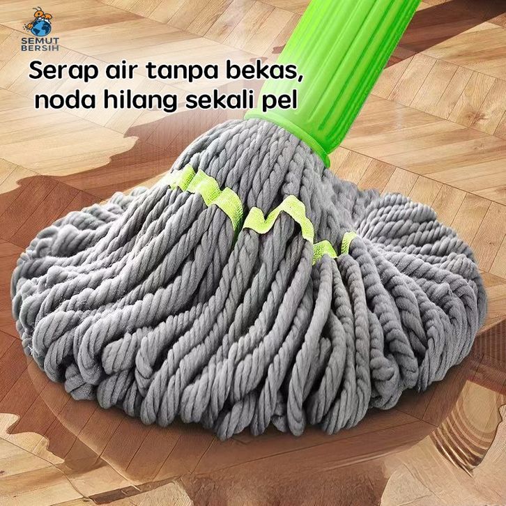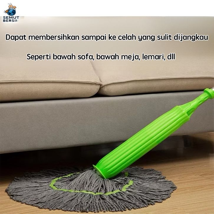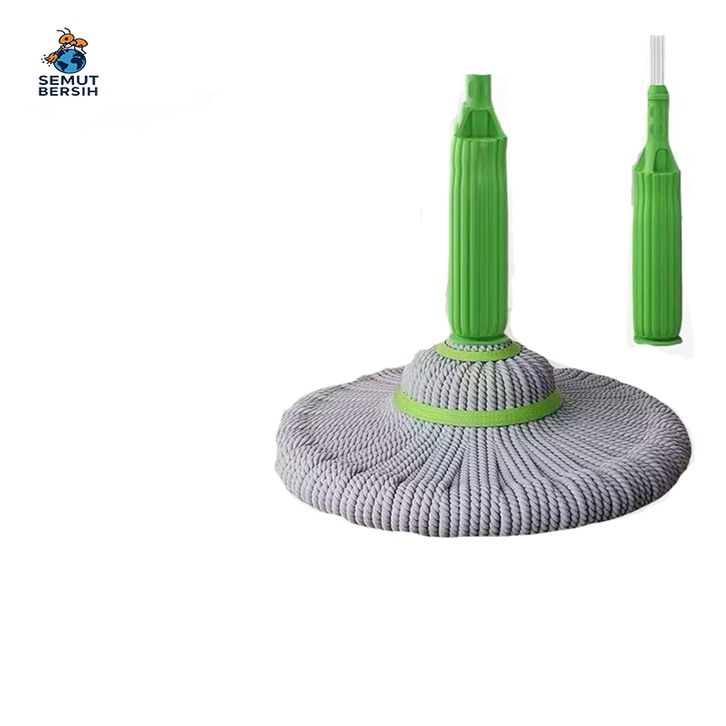 Pel Lantai Putar Otomatis dengan Kain Mikrofiber Daya Serap Tinggi Gagang Hijau