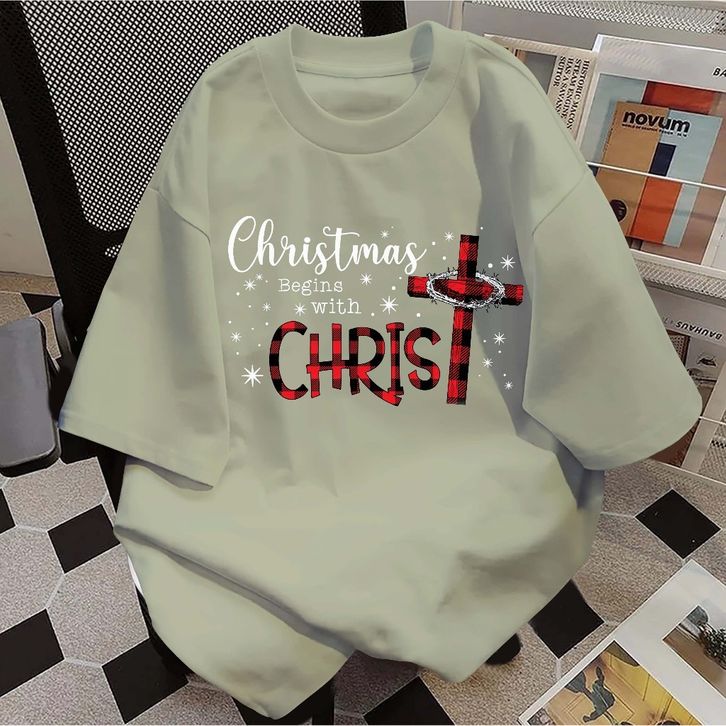 Kaos Natal T-shirt Baju Kaos Merry Christmas I Begin With Christ I Atasan Distro Xmas Rohani Seragam