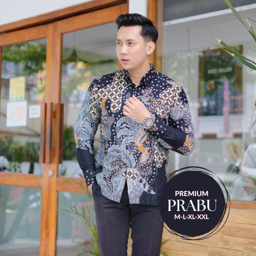 Prabu Batik Pria Modern Kemeja Lengan Panjang Bahan Nyaman Adem Murah