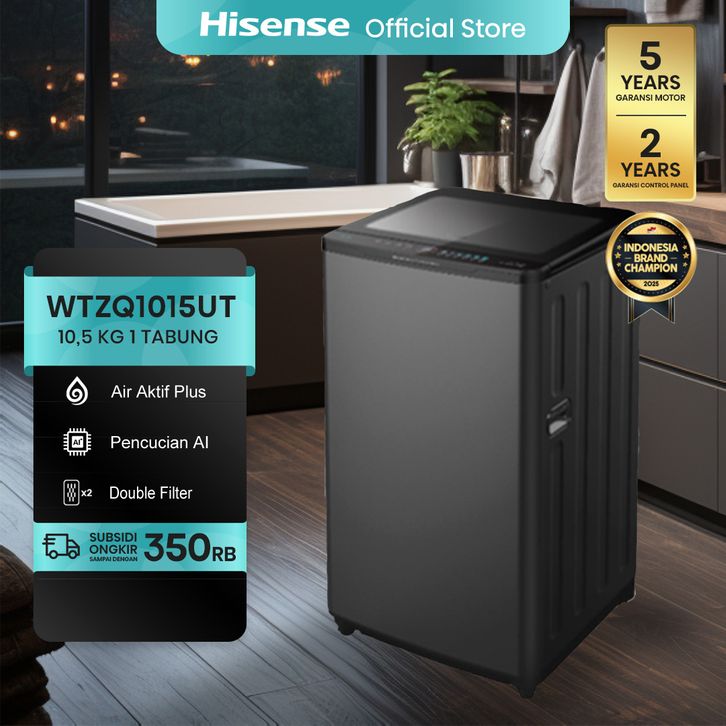 Hisense Mesin Cuci WTZQ1015UT - Top Loading 1 Tabung 10.5 KG Washing Machine - Load Detection - Hijab Mode
