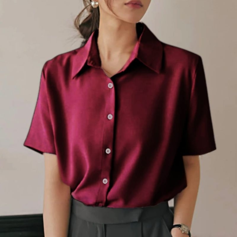 Baju Kemeja Wanita Pendek Kemeja Putih Hitam Kemeja Atasan Pendek Wanita Kerja Kasual Formal