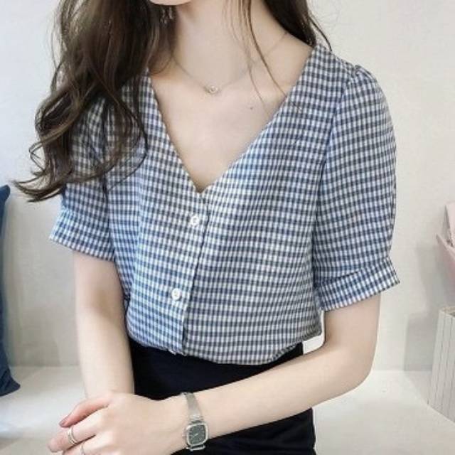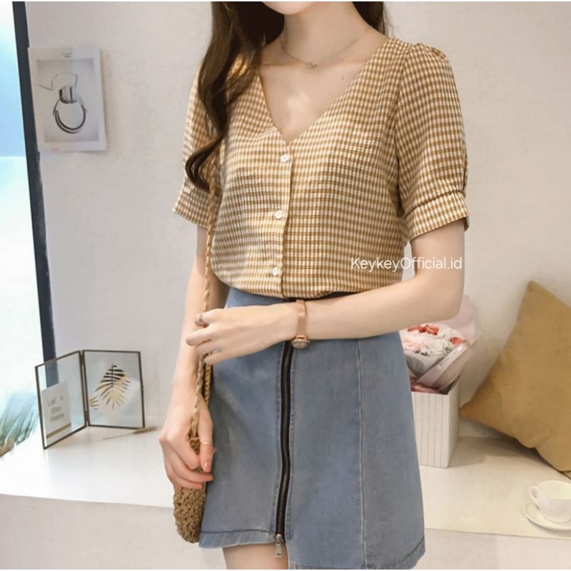 Key - 0143 LEMOLA Top Square Katun Size L / Atasan Kemeja & Blouse Wanita Blouse Katun Kotak Kecil