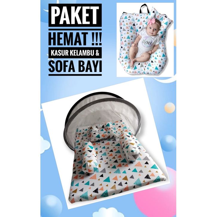 PAKET HEMAT !! Kasur Bayi Lipat Kelambu + Sofa Bayi Multifungsi 20+ Motif
