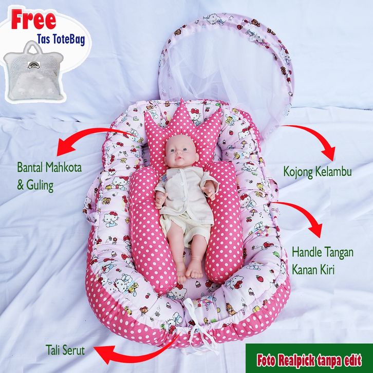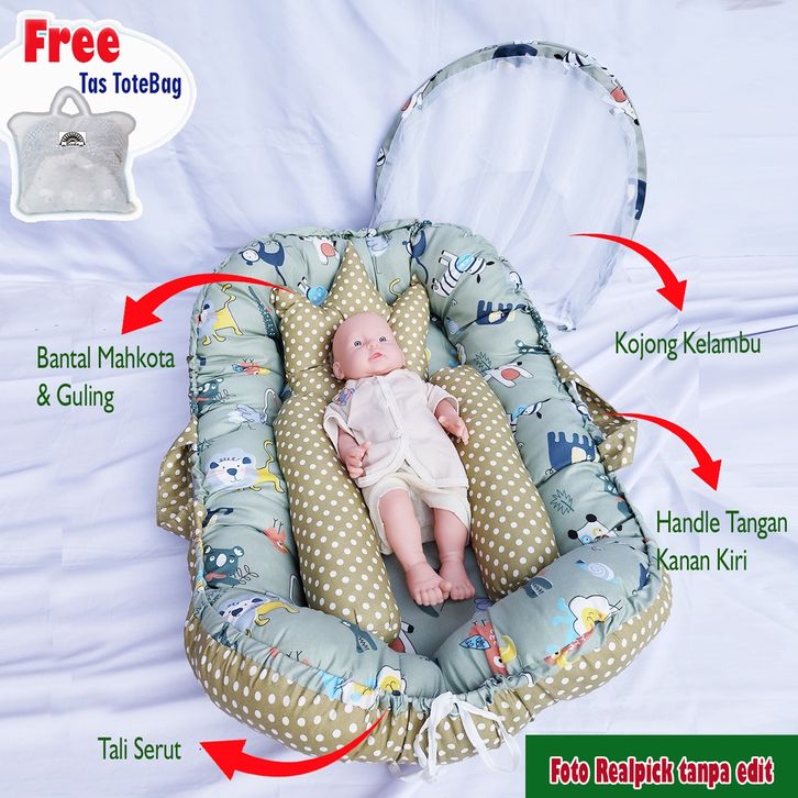 [FREE TAS TOTEBAG] KASUR BAYI BABY NEST PREMIUM DENGAN KELAMBU + FREE BANTAL PEYANG DAN GULING BAYI (BISA 2 SISI MOTIF B