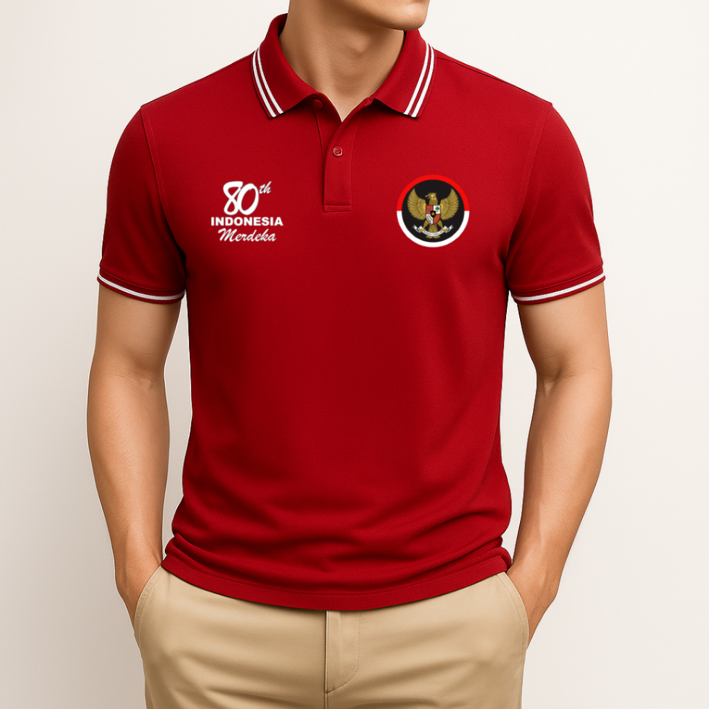 Kaos Kerah Polo Seragam Kemerdekaan HUT RI 2025 Pria Wanita Kaos Polo List II Logo Garuda / Kaos Pria / Kaos Kerah Polo